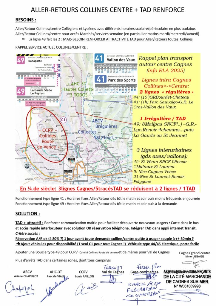 collectif de 4 comités de quartiers, 3 associations de commerçants ainsi que la fédération des commerçants, en proposant 3 solutions d’amélioration de l’accessibilité à l’hypercentre de Cagnes. Monsieur le Maire a pris acte de ces propositions et s’est engagé à y répondre après étude de faisabilité.